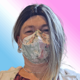 Photograph of Davi Gray. She is a white, trans nonbinary woman of indeterminate age. In this photo she is seated on stage near a microphone; she's wearing a silver gown and pink hair, and is staring offstage to the side.